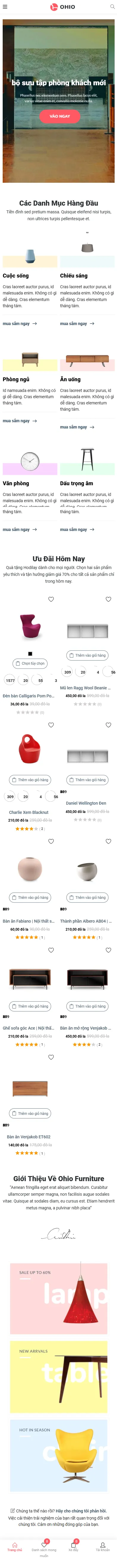 Chào mừng bạn đến với không gian mua sắm nội thất trực tuyến, nơi phong cách và sự tiện nghi hòa quyện để tạo nên những không gian sống hoàn hảo cho bạn. Trang web của chúng tôi cung cấp đa dạng các sản phẩm nội thất được thiết kế với sự tinh tế, chất lượng vượt trội, và phù hợp với mọi phong cách sống hiện đại.