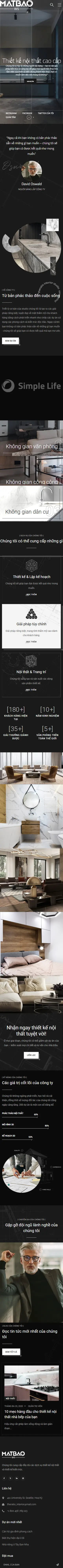 Một website thiết kế nội thất hiệu quả cần có giao diện hiện đại, rõ ràng, tương thích trên mọi thiết bị (điện thoại, máy tính bảng, laptop…). Các danh mục chính như Thiết kế căn hộ, biệt thự, nhà phố, văn phòng, được hiển thị trực quan, dễ điều hướng. Người dùng chỉ mất vài giây để tìm đến nội dung cần thiết, tiết kiệm tối đa thời gian thao tác.